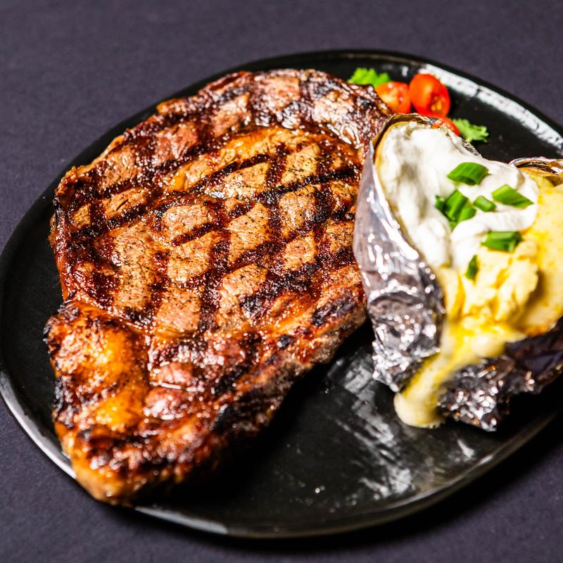 Ribeye $27.00 | Sirloin $21.00 • 2 eggs any style with breakfast potato and toast